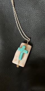 Turquoise Cross on Marble Slab Necklace on 20″ chain