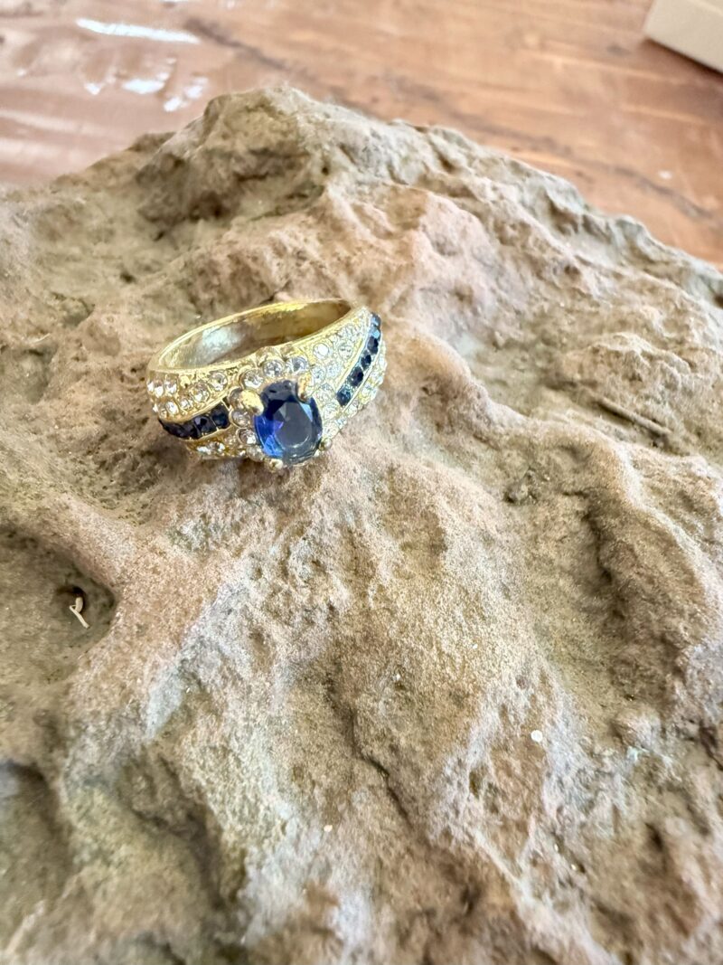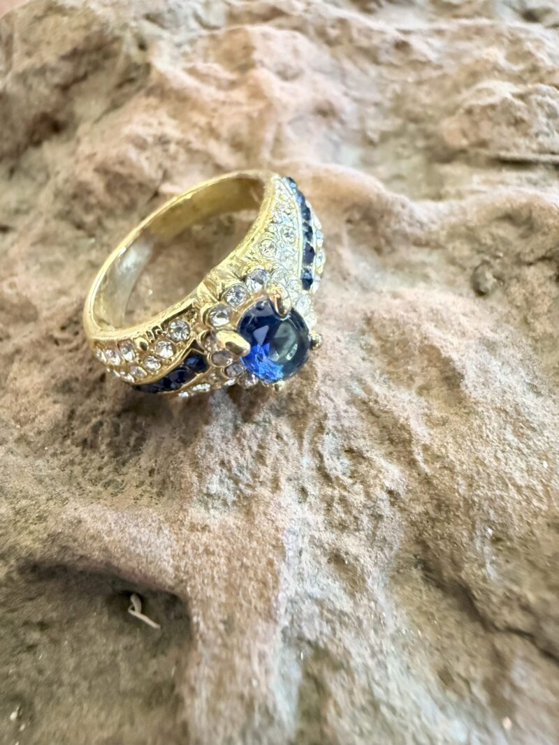 Blue Sapphire and Clear Sapphire Size 7 Ring
