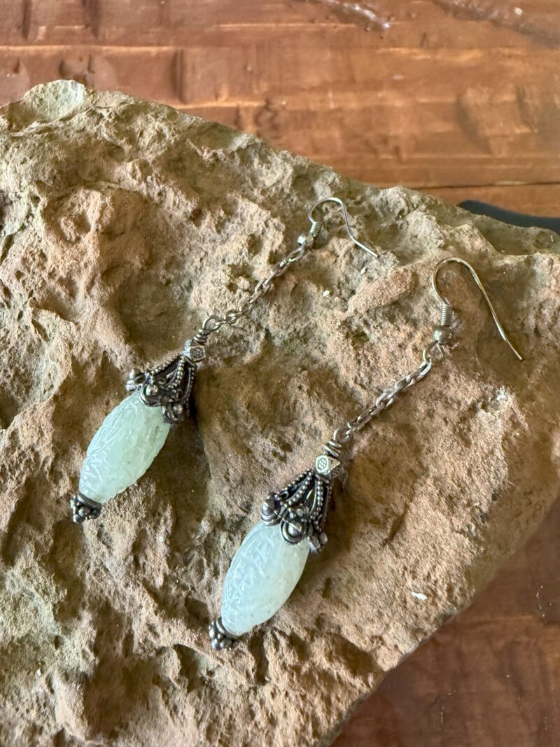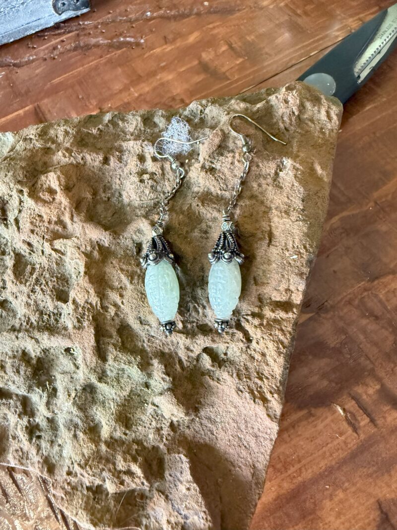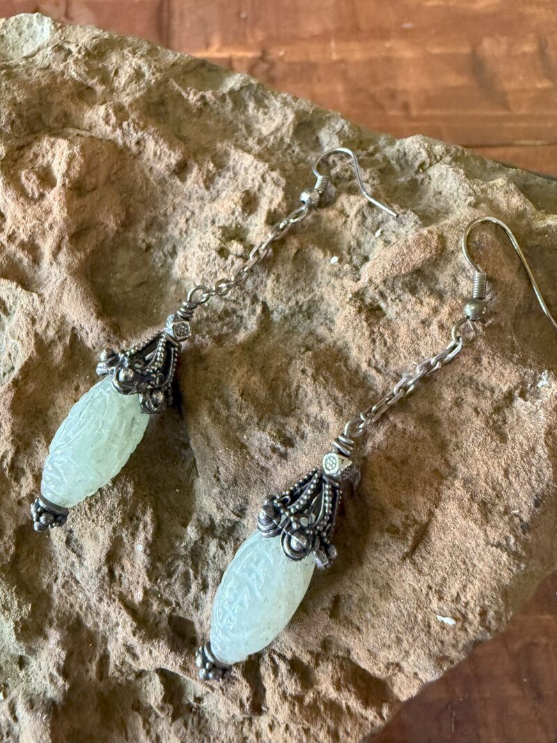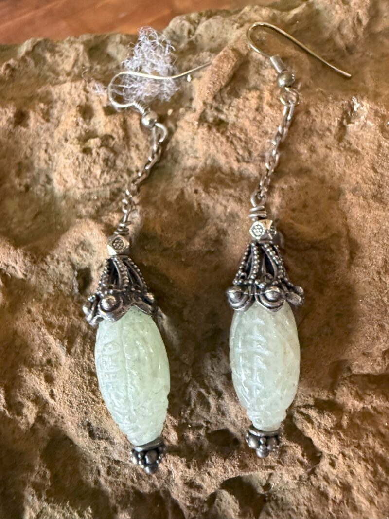 Beautiful Hand carved Jade and Silver Earrings